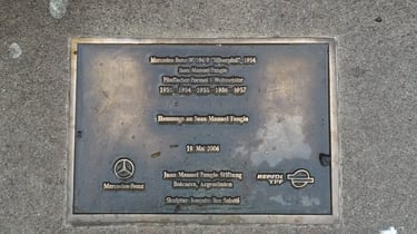 denkmal zu ehren von juan manuel fangio, fünffacher formel-1-weltmeister.
